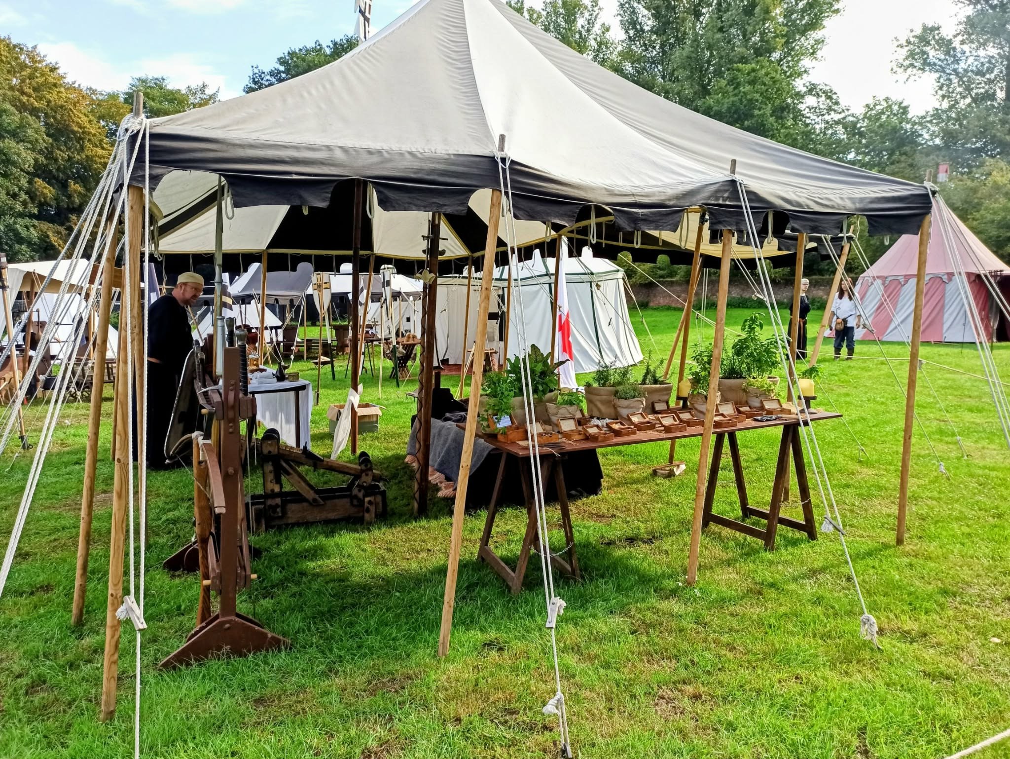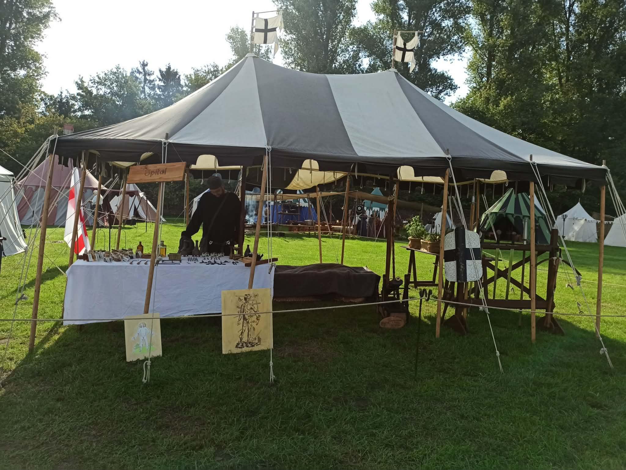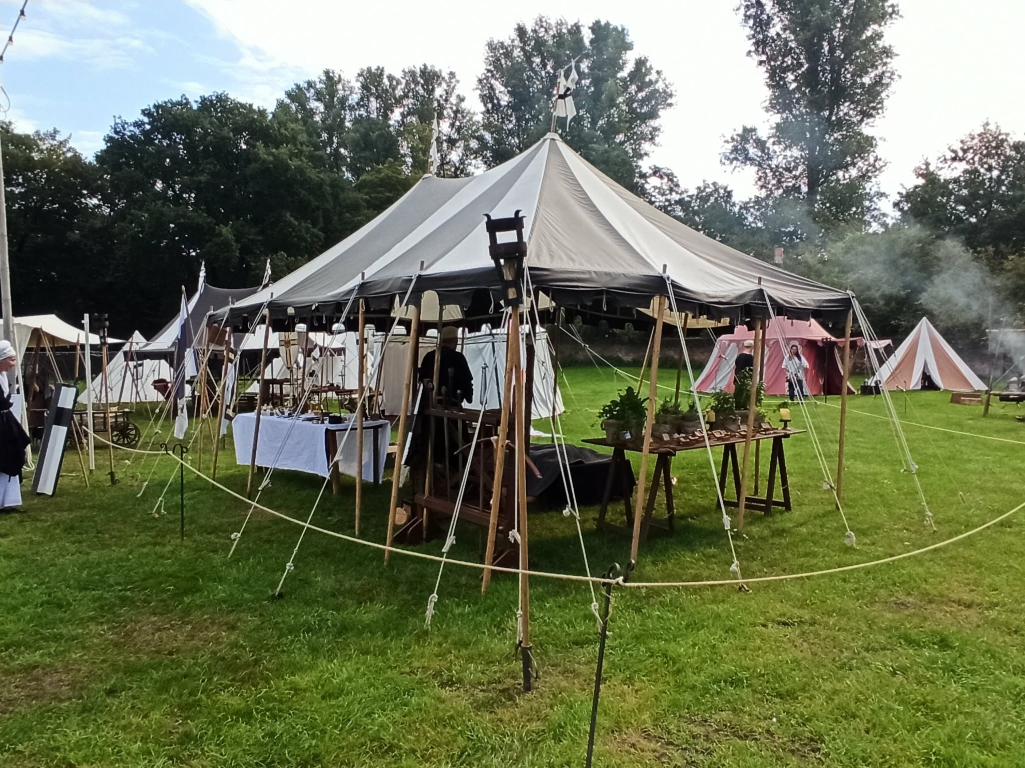 In unserem doppelmastigen Präsentationszelt werden auf einer Fläche von 6 x 4 m regengeschützt verschiedene, interessante Themen in Bezug auf den Deutschen Orden und dessen Leitspruch aufgegriffen - "Helfen, Heilen, Wehren", die das mittelalterliche Leben und Miteinander entscheidend mitgeprägt haben.