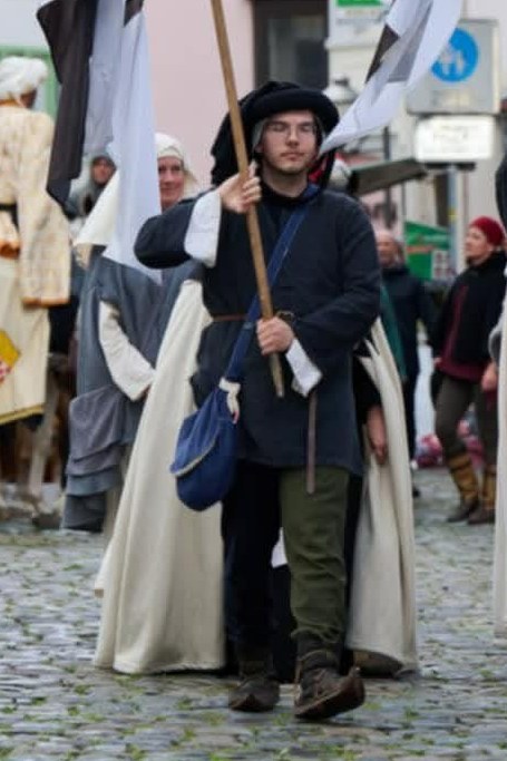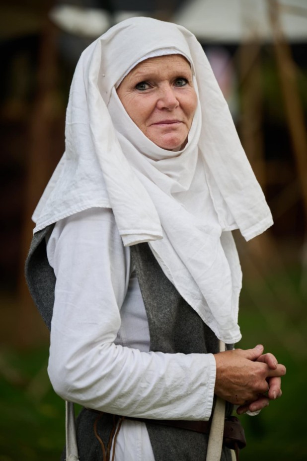 Mit ihrer flinken Nadel näht und schneidert sie Ausrüstungsteile nach historischem Vorbild, die in der Bannerwache benötigt werden.