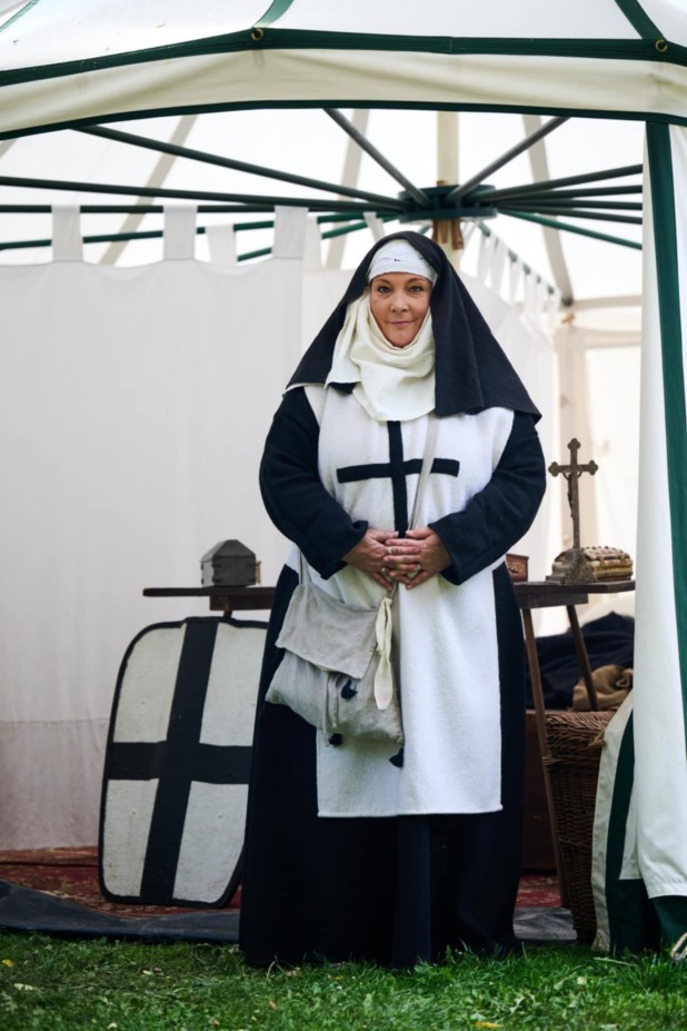 Schwester Brigitta ist für die schmackhafte Küche der Bannerwache nach mittelalterlichen Rezepten zuständig, zudem leitet sie mit geschickter Hand und Fachverstand die Schwestern im Spital.